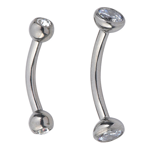 16g Titanium CZ Curved Barbell Curved Barbells 16g - 5/16" long (8mm) - 3mm ends Clear CZ