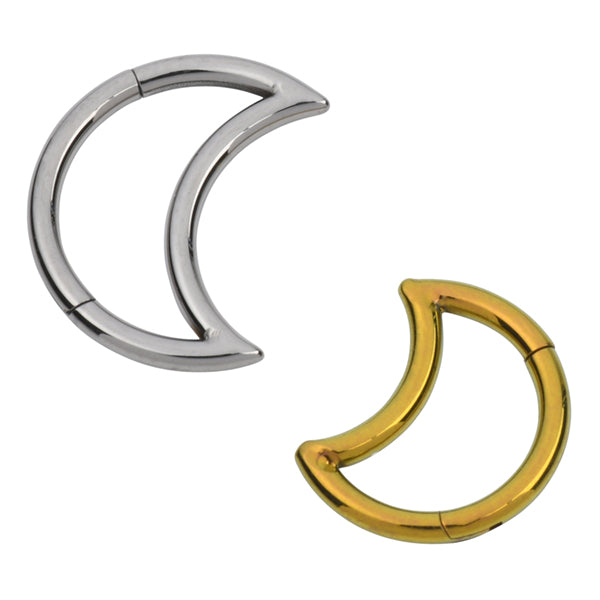 Moon Titanium Hinged Ring Hinged Rings 16g - 3/8" diameter (10mm) High Polish (silver)