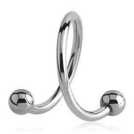 The 16 gauge spiral barbell is made from high polish grade 23 titanium (Ti 6Al-4V ELI ASTM F136) with external threading. Both ball ends are removable. Choose your size below.
