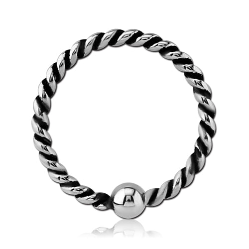 18g Braided Stainless Fixed Bead Ring Fixed Bead Rings 18g - 5/16" diameter (8mm) - 3mm bead Stainless Steel