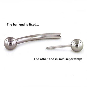 The 18 gauge threadless curved barbell post is made from implant grade titanium (ASTM F136 6AI-4V ELI) by NeoMetal Body Jewelry. All parts are hand polished to a mirror finish. The curved barbell comes with one 2.3mm fixed ball end. The other end is not included and must be purchased separately! Choose your barbell length below.