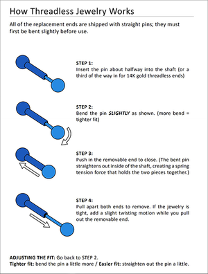 We accept returns and exchanges for any reason so long as it remains heat sealed in the original packaging. All jewelry is individually packaged in clear heat sealed bags that allow for a good visual inspection of size and color. Before opening the bags, please take a good look at your jewelry and make sure it meets up with your expectations. Your jewelry is guaranteed to be delivered undamaged and free of manufacturer defects. Broken, missing or incorrect items must be reported within seven days of delivery. Items can be exchanged or returned for refund within thirty days of delivery confirmation, but only if the original heat-sealed bags remain unopened. We do not allow returns for custom anodized titanium jewelry or specially marked clearance items. Original shipping charges will not be reimbursed, but replacements for any defective or broken merchandise are always shipped free. Refunds are issued to the original payment account and usually takes a few days for the credit to post.
