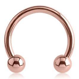 The 18 gauge circular barbell is made from rose gold PVD coated 316L stainless steel with external threading. Both ball ends are removable. Choose your size below.