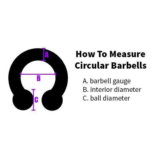 The 2 gauge circular barbell is made from black PVD coated 316L stainless steel with internal threading. Both ball ends are removable. Choose your size below.