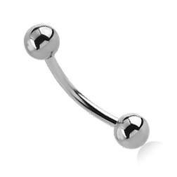 The 4 gauge curved barbell is made from 316L stainless steel with internal threading. Both ball ends are removable. Choose your size below.