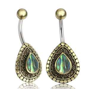 Abalone & Dotted Brass Belly Ring Belly No-Dangles