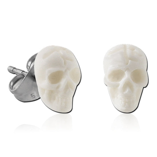 These 20 gauge skull stud earrings are made from acrylic and 316L stainless steel. These are available in white only.
