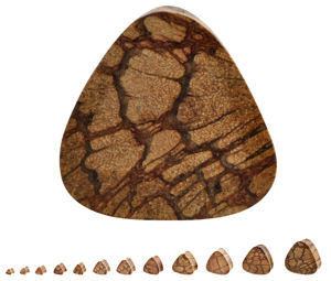These double flare triangle plugs are made from antique wood. Choose your size below.