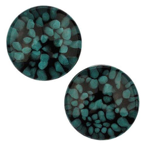 These double flare aqua pebble plugs are made from hand blown borosilicate glass by Glasswear Studios. They can be worn backwards to show the plain glossy black side. Choose your size below.
