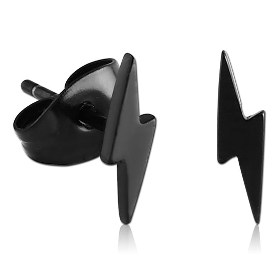 These 20 gauge lightning bolt stud earrings are made from black PVD coated 316L stainless steel.