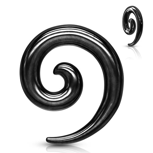 These basic spirals are cast from black PVD coated 316L stainless steel. Choose your size below.