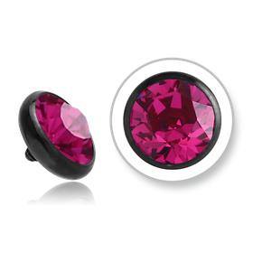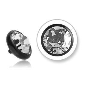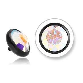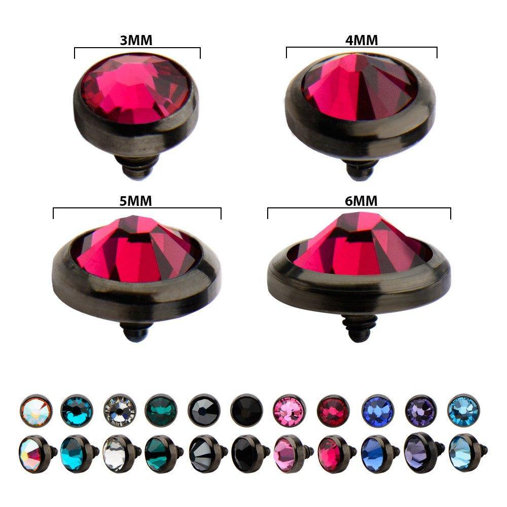 The 14 gauge cz disc is made from black PVD coated 6ALV-ELI grade 23 titanium. These will fit most any 14 gauge internally threaded straight barbell, labret or dermal anchor. We cannot guarantee compatibility with curved barbells. Choose your size and color below.