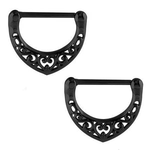 Filigree Heart Black Nipple Clickers Nipple Clickers 14g - 9/16" long (14mm) Black Stainless