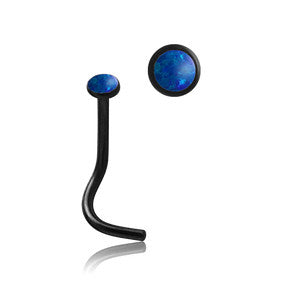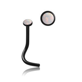 The 2.35mm bezel-set synthetic opal nostril screw is made from black PVD coated 316L stainless steel. Choose your size and color below.