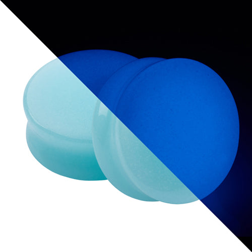 Blue Glow-in-the-Dark Glass Convex Plugs Stretched Lobes 2 gauge (6mm) Blue Glow-in-the-Dark