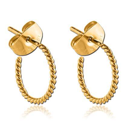 These 20 gauge braided hoop stud earrings with friction backs are made from gold PVD coated 316L stainless steel. The hoops have a 3/8" interior diameter.