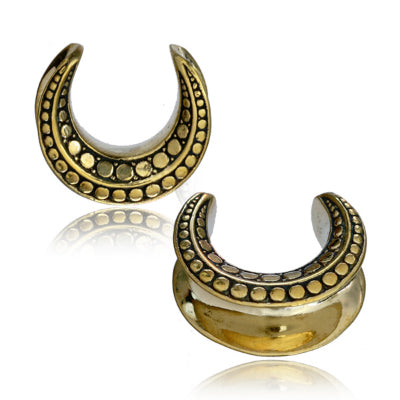 These dotted saddle spreaders are made from yellow brass. They have a wearable area of 5/16" between flares. These should fit so long as your lobes can handle large flares, but many customers prefer these one smaller size than the plug size they normally wear. Choose your size below.
