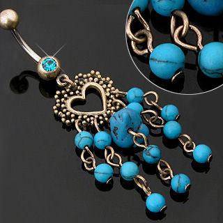 Brass & Turquoise Belly Dangle Belly Dangles 14 gauge - 3/8" long (10mm) Stainless Steel