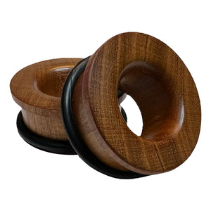 These single flare tunnels are carved from cherry wood and polished to a smooth finish. They have a wearable area of 8mm, 10mm or 12mm between the flare and o-ring. Each one has a groove to secure the o-ring in its place. Our photo shows the 25mm size. Choose your size below.