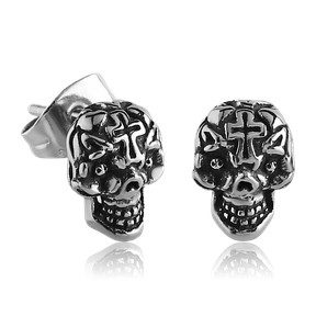 These 22 gauge cross skull stud earrings are made from cast 316L stainless steel.