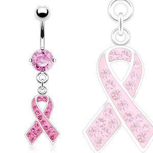 The 14 gauge cz pink ribbon dangle belly barbell is made from externally threaded 316L stainless steel. Only the 5mm ball end is removable.