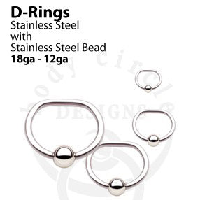 Captive D-Ring by Body Circle Designs Captive Bead Rings 18g - 5/16" diameter - 1/8" bead Stainless Steel