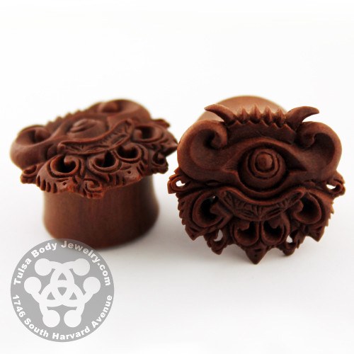 These double flare dark magic plugs are handcarved from sabo wood by Urban Star Organics. They have approximately 3/8" wearable area between the flares. Choose your size below.