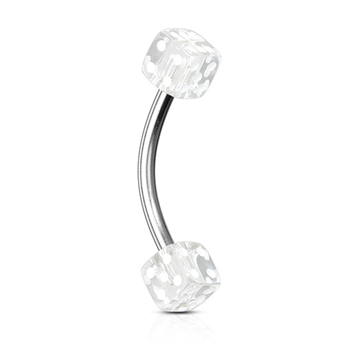 Acrylic Dice Curved Barbell Curved Barbells 16g - 5/16" long ( 8mm) Clear