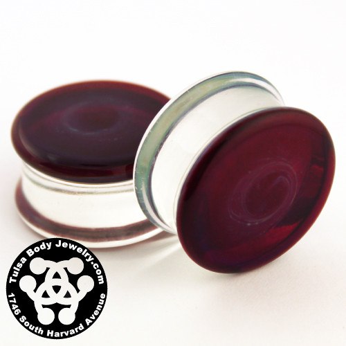 I like the glasswear studios plugs for all their awesome colors, but the amber purple is definitely special, from the front it is a rich burgundy with some royal purple swirled in and its translucency is awesome to me too, even at the size I bought 10mm/00g it's subtle richness is noticeable. Also I'd have to say the double flared ones are equally as cool to wear from the back, with it's purple perwinkle Galaxy swirls going on behind the front, it can really double as a whole other different pair of plugs too with a hidden cosmic twist, Thank you for making these, they're really cool :)