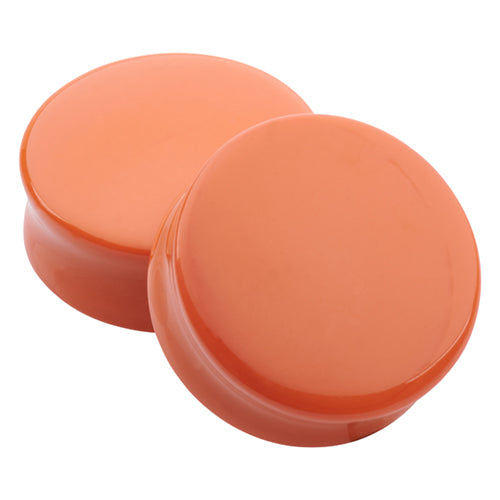 These double flare convex plugs are made from opaque orange glass. They have a wearable area of 3/8" between flares. Choose your size below.