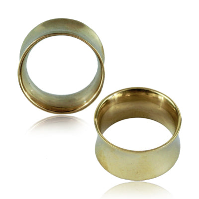 These double flare tunnels are made from yellow brass. They have a wearable area of 7/16" between flares. Choose your size below.