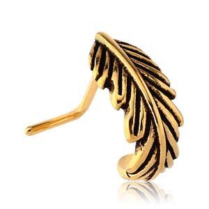 The feather L-bend nose hoop is made from gold PVD coated 316L stainless steel. The hoop has a 5/16" interior diameter.