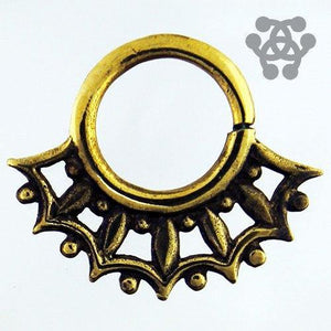 The 14 gauge fern septum ring is cast from solid brass. Brass is not meant for long term wear and may oxidize under extreme moisture conditions. If you're unsure how to open and close continuous rings (a.k.a. seamless), be sure to check out our video demonstration.
