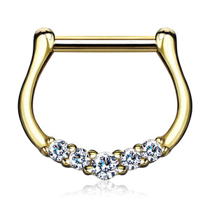 Five CZ Yellow 14k Gold Septum Clicker Septum Clickers