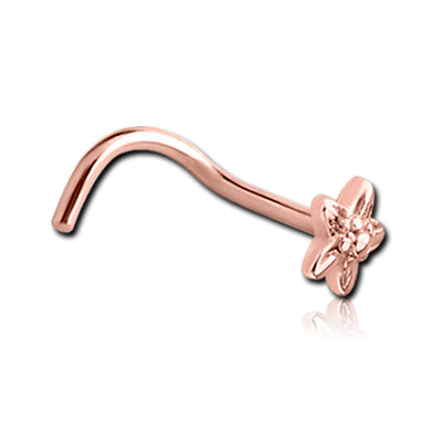 The 20 gauge flower nostril screw is made from rose gold PVD coated 316L stainless steel with 1/4" wearable area.