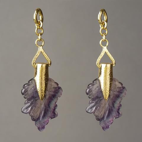 Fluorite Maple Leaf Pendants by Diablo Organics Ear Weights 65mm Large Fluorite