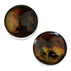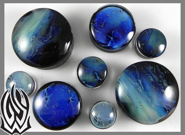 These double flare gaia plugs are made from hand blown borosilicate glass by Glasswear Studios. They can be worn backwards to show the plain glossy black side. Choose your size below.