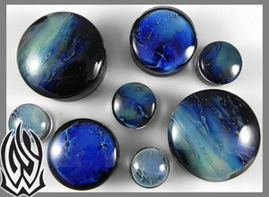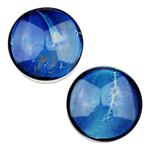 Gaia Double Flare Glass Plugs Stretched Lobes 9/16 inch (14mm) Coastal (blue)