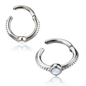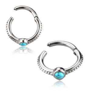 The 16 gauge gem beaded hinged segment ring is made from 316L stainless steel. These look just like a regular segment ring, but so much easier to use (no ring openers are required). These are available with turquoise gemstone only.