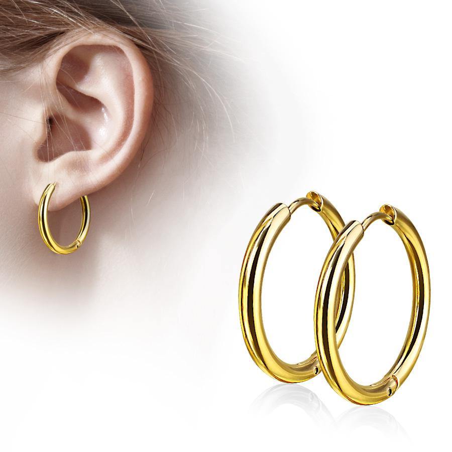 These 20 gauge clicker hoop earrings are made from gold PVD coated 316L stainless steel. Choose your size below.