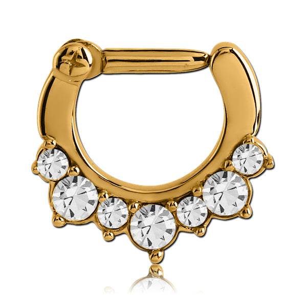 Crown CZ Gold Septum Clicker Septum Clickers 16g - 1/4" diameter (6mm) Clear