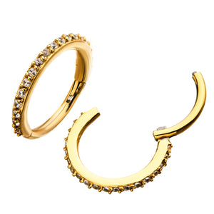 CZ Paved Gold Hinged Segment Ring Hinged Rings 16g - 5/16" diameter (8mm) Gold Stainless