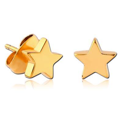 These 20 gauge flat star stud earrings are made from gold PVD coated 316L stainless steel.