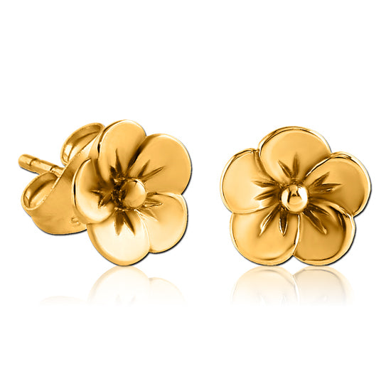 These 20 gauge flower stud earrings are made from gold PVD coated 316L stainless steel.