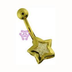 Bezel CZ Star Gold Belly Barbell Belly No-Dangles