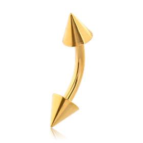 16g Spiked Gold Curved Barbell Curved Barbells 16g - 5/16" long - 3x3mm cones Gold Stainless