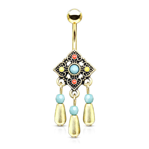 Square Flower Gold Belly Dangle Belly Dangles 14 gauge - 3/8" long (10mm) Gold Stainless