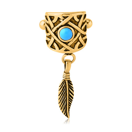 16g Feather Dangle Gold Turquoise Cartilage Cuff