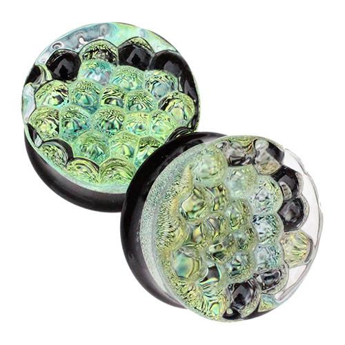 Green Foil Bubble Textured Double Flare Glass Plugs