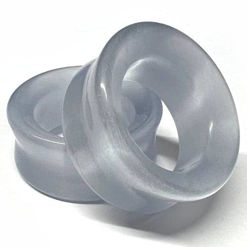 These double flare concave tunnels are made from grey cats eye glass. They have a wearable area of 3/8" between flares. Choose your size below.